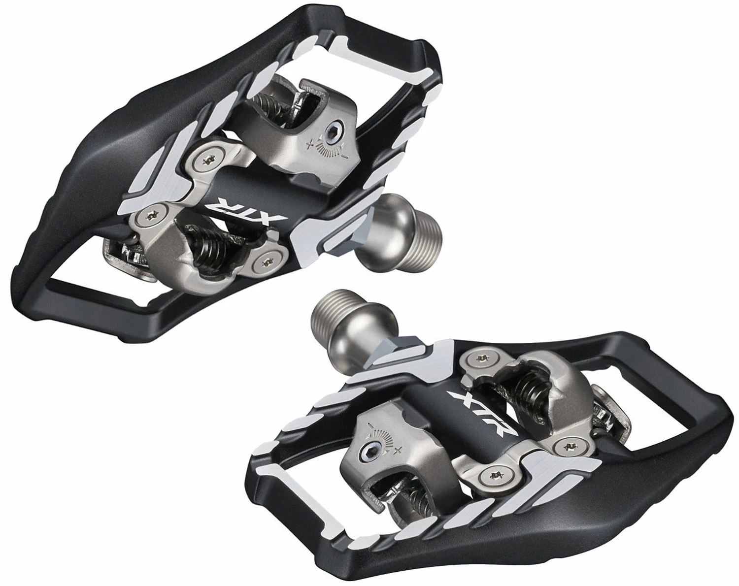 Les pédales de trail et d’enduro hautes performances XTR PD-M9120 de Shimano ont une surface de contact élargie, qui optimise la stabilité sur le terrain. La surface étendue de la pédale arrière est spécialement adaptée aux chaussures de montagne et d’enduro et améliore le contrôle.